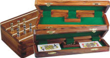 12" Flat Inlaid Cribbage board cum box with double deck playing cards storage space in Golden Rosewood, Rosewood, Ebony, White Maple & Brass Inlaid
